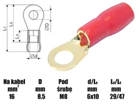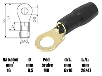 ( ilość produktów: 60 )Końcówka oczkowa M8 izolowana, 8.4mm, złocona, na przewód 16mm, SGE czarny