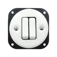 Włącznik światła podwójny kołyskowy ceramiczny, okrągły podtynkowy biały Ceramic Loft