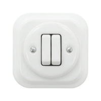 Włącznik światła podwójny ceramiczny, kwadratowy z ramką, podtynkowy biały Ceramic Loft