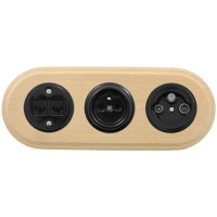 2x Gniazdo elektryczne okrągłe czarne z ramką podwójną jasne drewno, montaż podtynkowy, Ceramic Loft