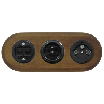 Gniazdo Ethernet Cat6 x2 okrągłe czarne z ramką ciemne drewno, montaż podtynkowy, Ceramic Loft