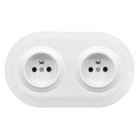 2x Gniazdo elektryczne okrągłe z ramką podwójną, białe, montaż podtynkowy, Ceramic Loft
