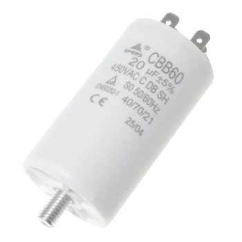 Kondensator rozruchowy do silnika 20uF 450VAC, 4 konektory, 40x73mm