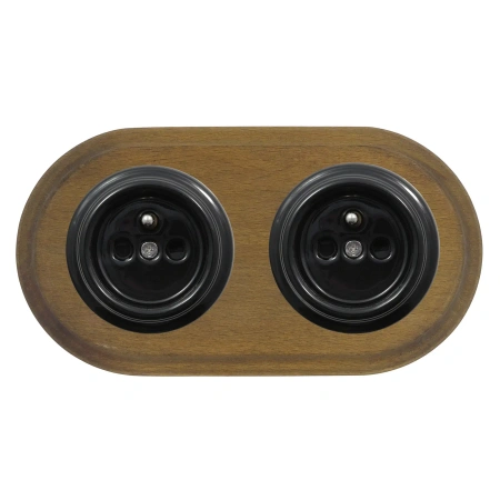 2x Gniazdo elektryczne okrągłe czarne z ramką podwójną ciemne drewno, montaż podtynkowy, Ceramic Loft