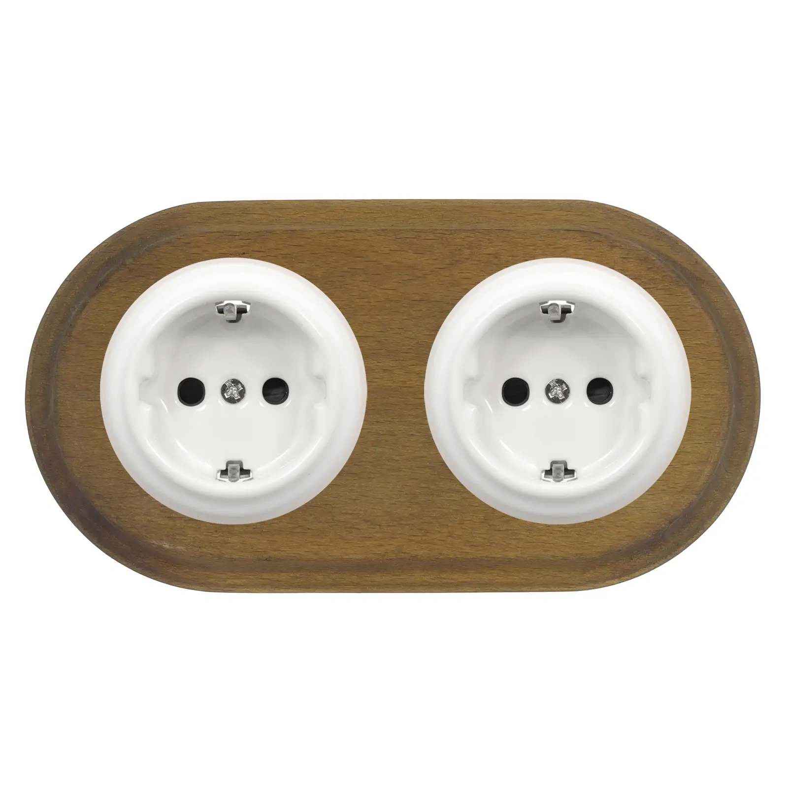 2x Gniazdo elektryczne Schuko okrągłe białe z ramką podwójną ciemne drewno, montaż podtynkowy, Ceramic Loft