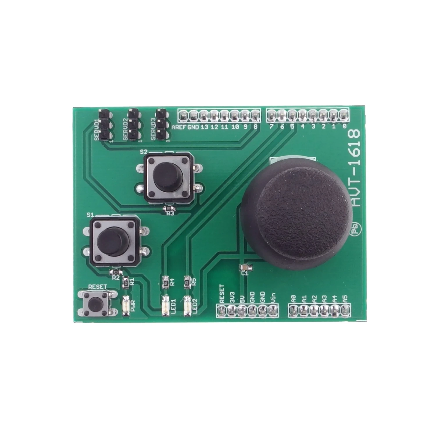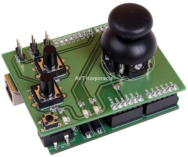 Moduł jest kolejna nakładką na płytkę bazową projektu Arduino. Został wyposażony w niewielki joystick, dwa przyciski oraz złącza umożliwiające dołączenie trzech serwomechanizmów. Dzięki takiej konfiguracji możliwe jest zbudowanie prostego manipulatora sterowanego z platformy Arduino.