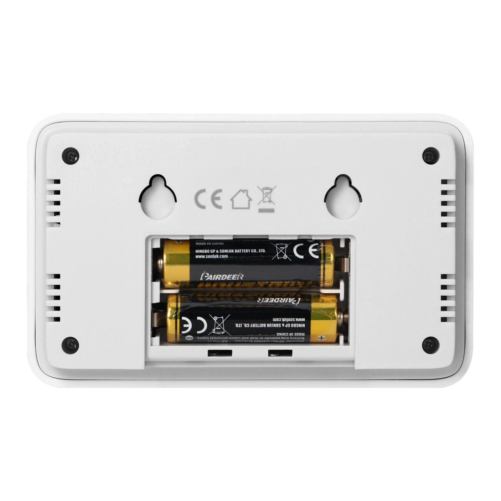 Żywotność czujnika wynosi 10 lat. Model zasilany przez dwie baterie AA (dołączone do zestawu). Wymiary: 126x77x34,2 mm.