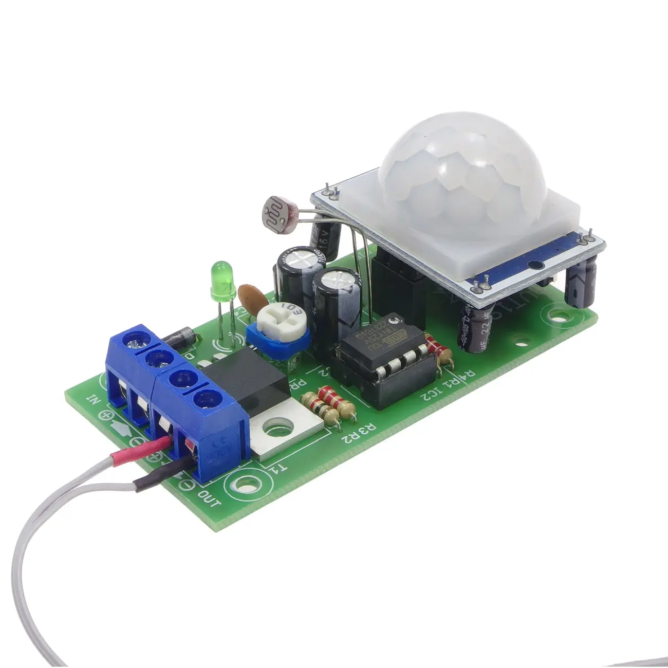Włącznik czasowy z czujnikiem ruchu, który ma możliwość elastycznego konfigurowania parametrów pracy. Pełni funkcję automatycznie włączanego oświetlenia nocnego i jest przeznaczony do współpracy z taśmami LED. Wykrycie ruchu w pomieszczeniu ze słabymi warunkami oświetleniowymi uruchamia układ czasowy, płynnie rozjaśniając dołączone do wyjścia źródło światła LED. Po upływie czasu ustawionego potencjometrem następuje jego płynne, powolne wygaszenie.