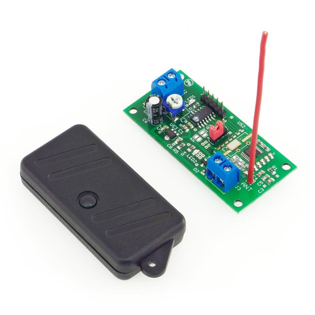Układ umożliwia zdalne załączanie oświetlenia drogą radiową. Składa się z dwóch modułów: nadajnika i odbiornika. Jedyną funkcją nadajnika jest ciągłe wysyłanie specjalnie przygotowanych pakietów danych drogą radiową. Transmisja rozpoczyna się po wciśnięciu przycisku, który doprowadza zasilanie do znajdujących się na płytce obwodów. Wyjście odbiornika jest typu otwarty kolektor, Co oznacza, że może sterować m.i n. krótkim paskiem diod LED i przekaźnikiem.