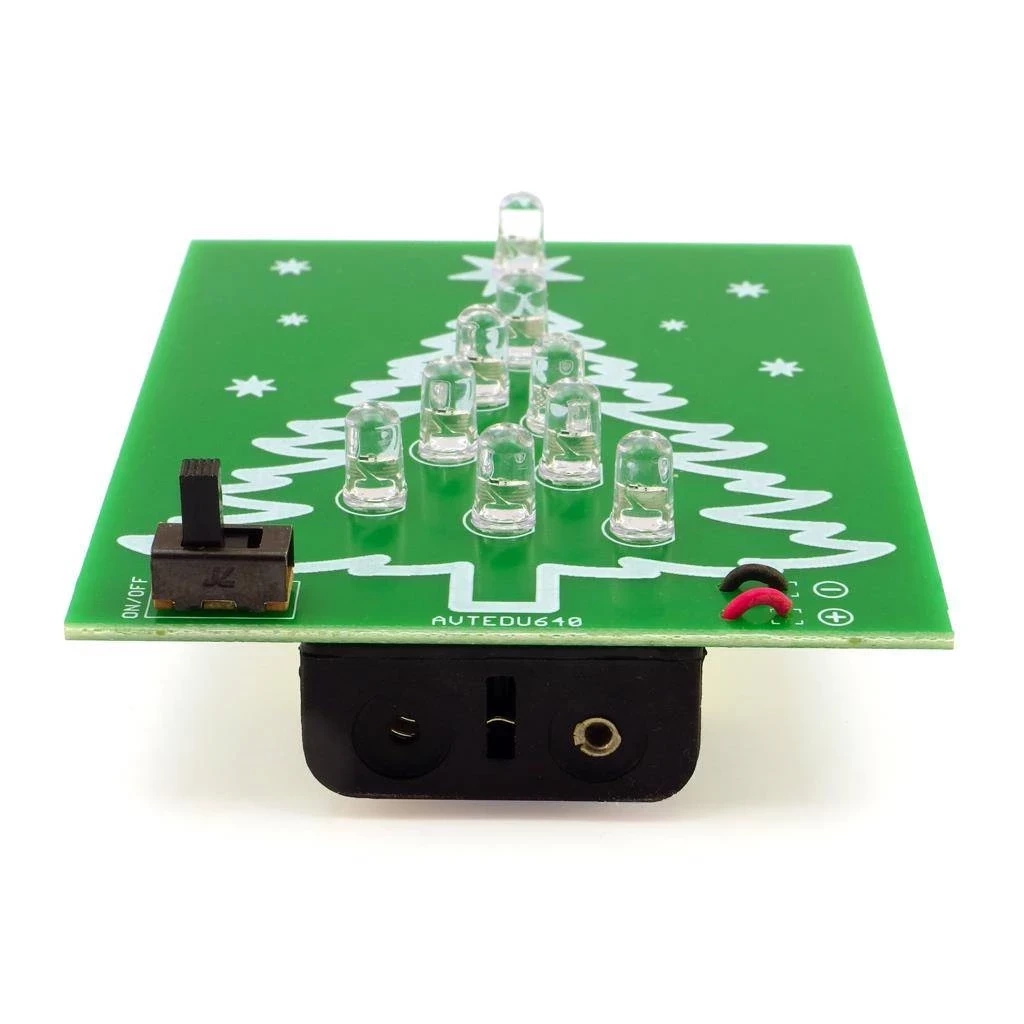 Choinka LED RGB AVT EDU640 to prosty, kreatywny świąteczny zestaw DIY, który po zlutowaniu świeci płynnie zmieniającymi kolor diodami LED RGB. Niewielka liczba elementów sprawia, że montaż jest wyjątkowo łatwy, co czyni projekt idealnym dla początkujących oraz dzieci pod opieką dorosłych. Dekoracja świetnie sprawdzi się na biurku, półce lub w małych wnętrzach, wprowadzając odrobinę świątecznej magii.