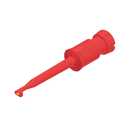 Praktyczny chwytak probierczy typu 'haczykowego' z przyłączem lutowanym i pozłacaną sprężyną kontaktową, odpowiedni do przyłączania się do przewodów (linek i drutów) oraz kołków i zaczepów pomiarowych.