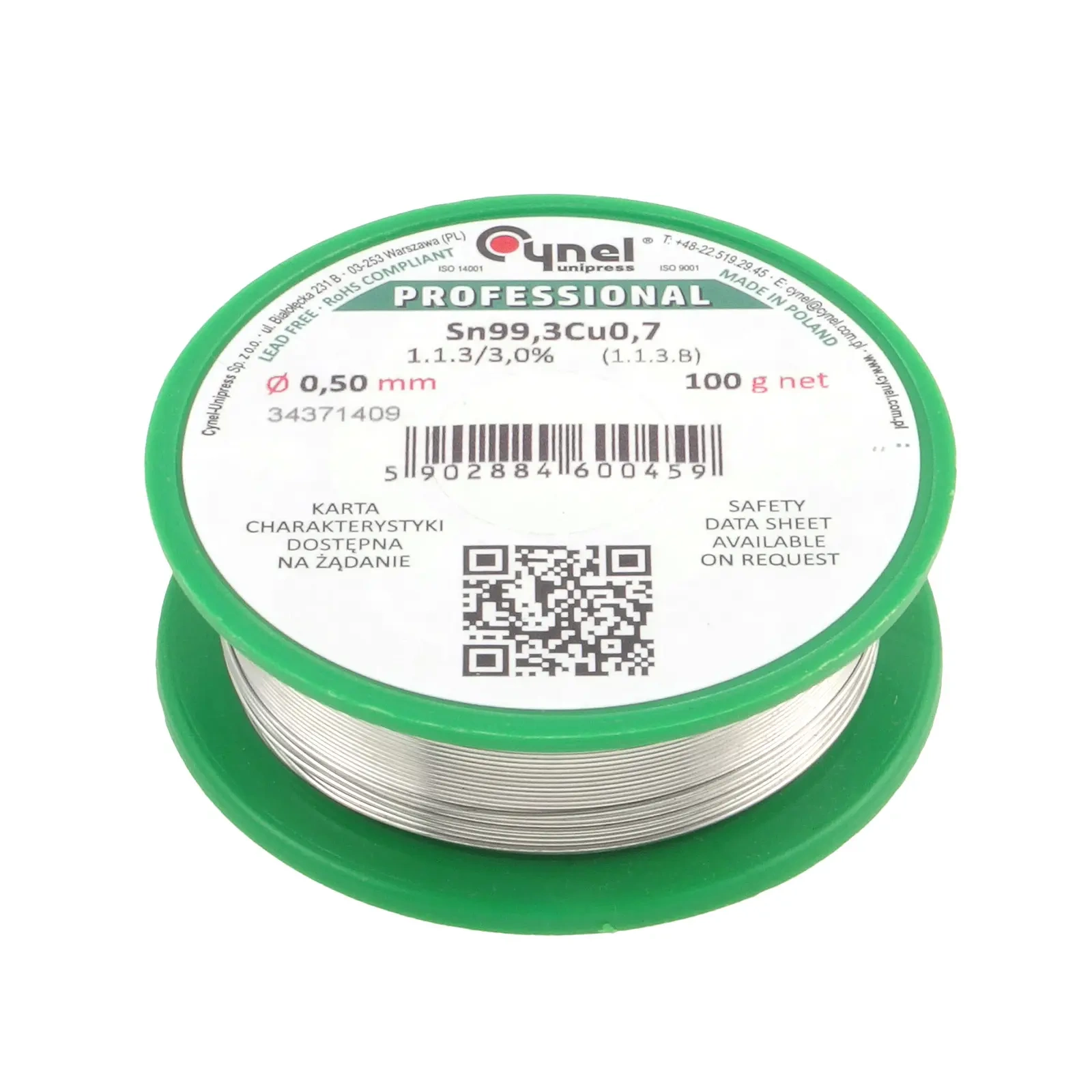 Cyna lutownicza bezołowiowa - spoiwo Sn99,3Cu0,7 - topnik 1.1.3 - 0,50mm - Cynel 100g