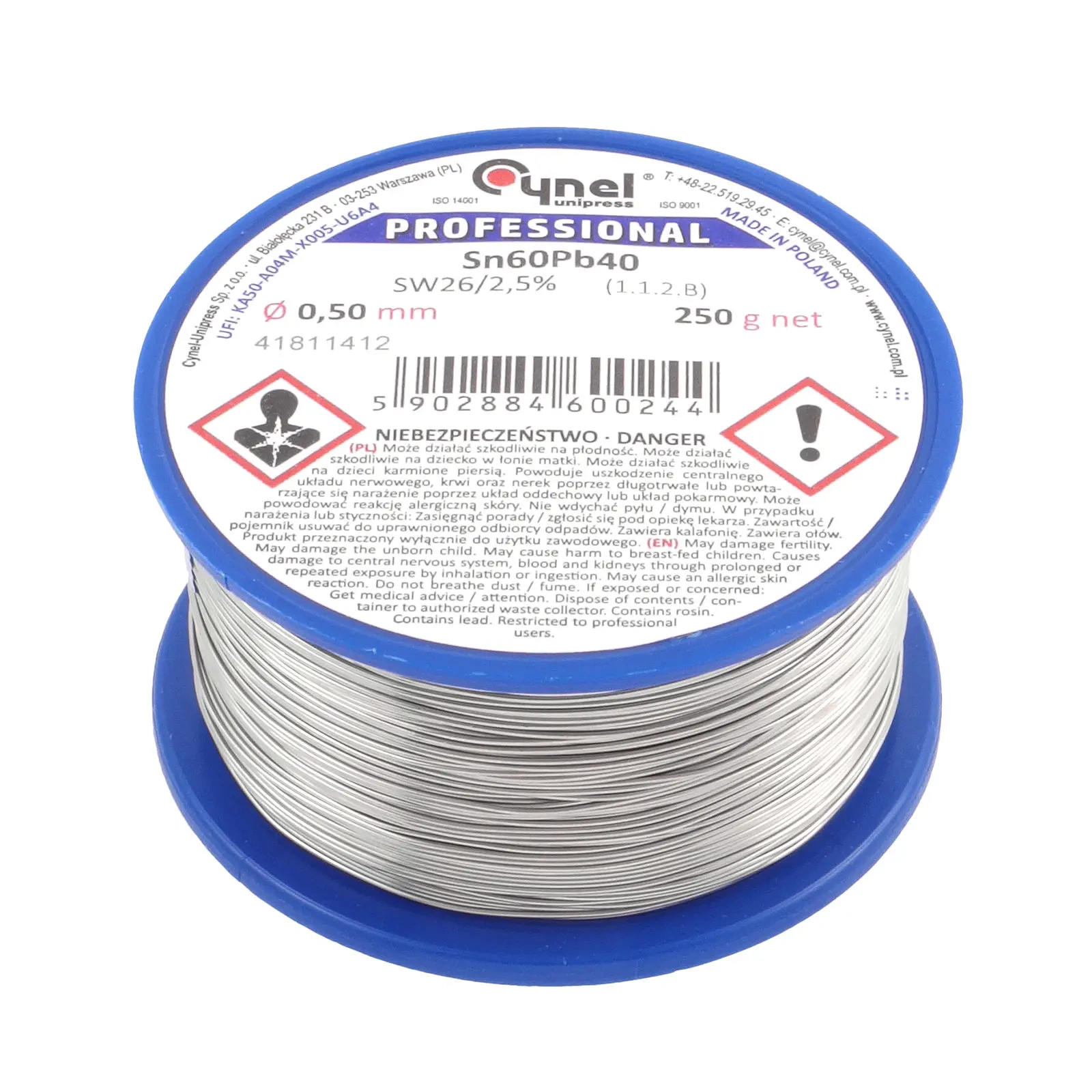 Cyna lutownicza z topnikiem SW26 - 0.5mm - spoiwo Sn60Pb40 Cynel 250g