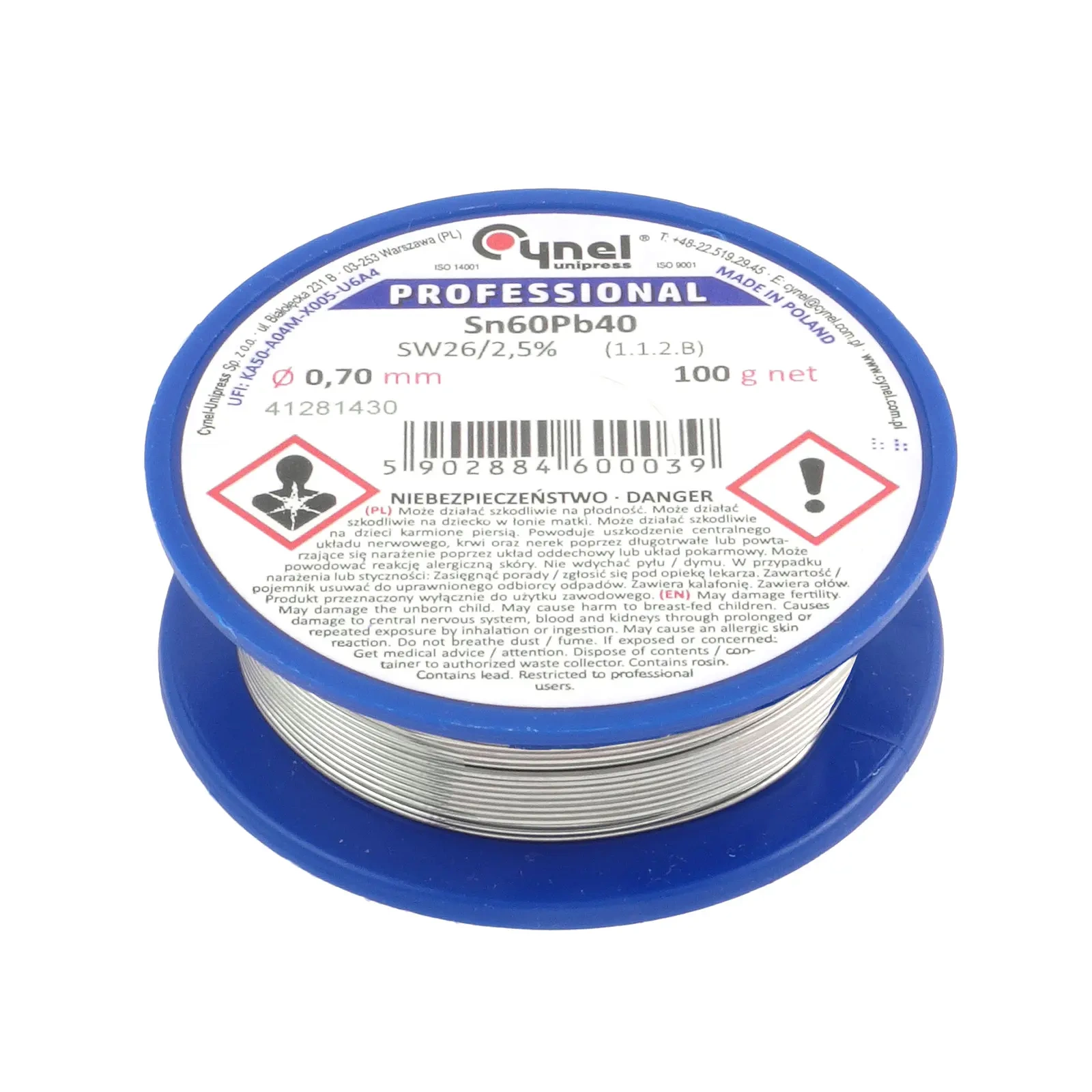 Opinie o Cyna lutownicza z topnikiem SW26 - 0.7mm - spoiwo Sn60Pb40 Cynel 100g