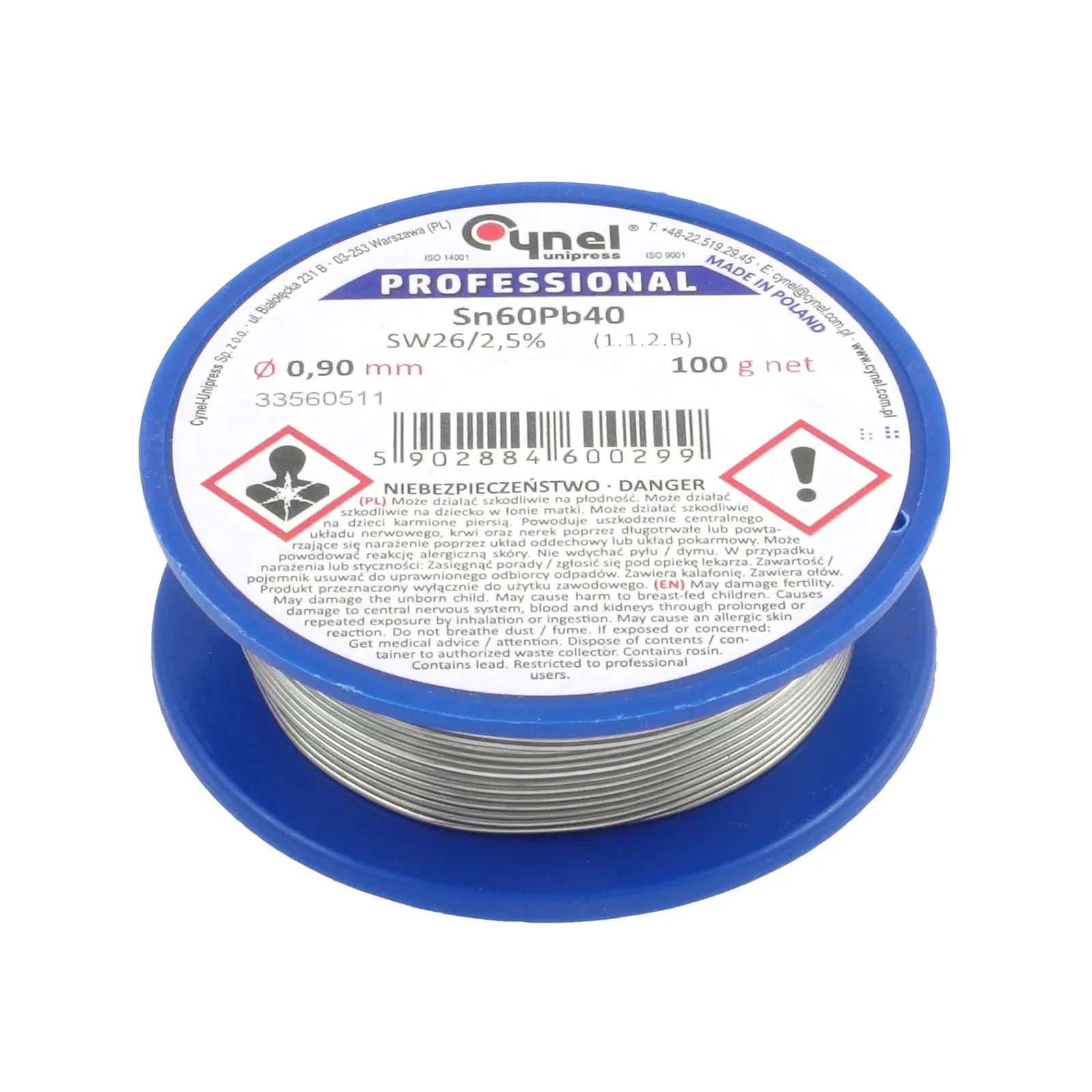 Spoiwo Sn60Pb40 z topnikiem SW26 zostało wyprodukowane w pierwszym wytopie cyny i ołowiu zgodnie z EN ISO 9453:2014. Zawiera kalafoniowy, halogenkowy topnik SW26. Produkt przeznaczony do profesjonalnego lutowania automatycznego i ręcznego w elektronice i elektrotechnice, gdzie nie jest wymagane spełnienie warunków dyrektywy RoHS2.
