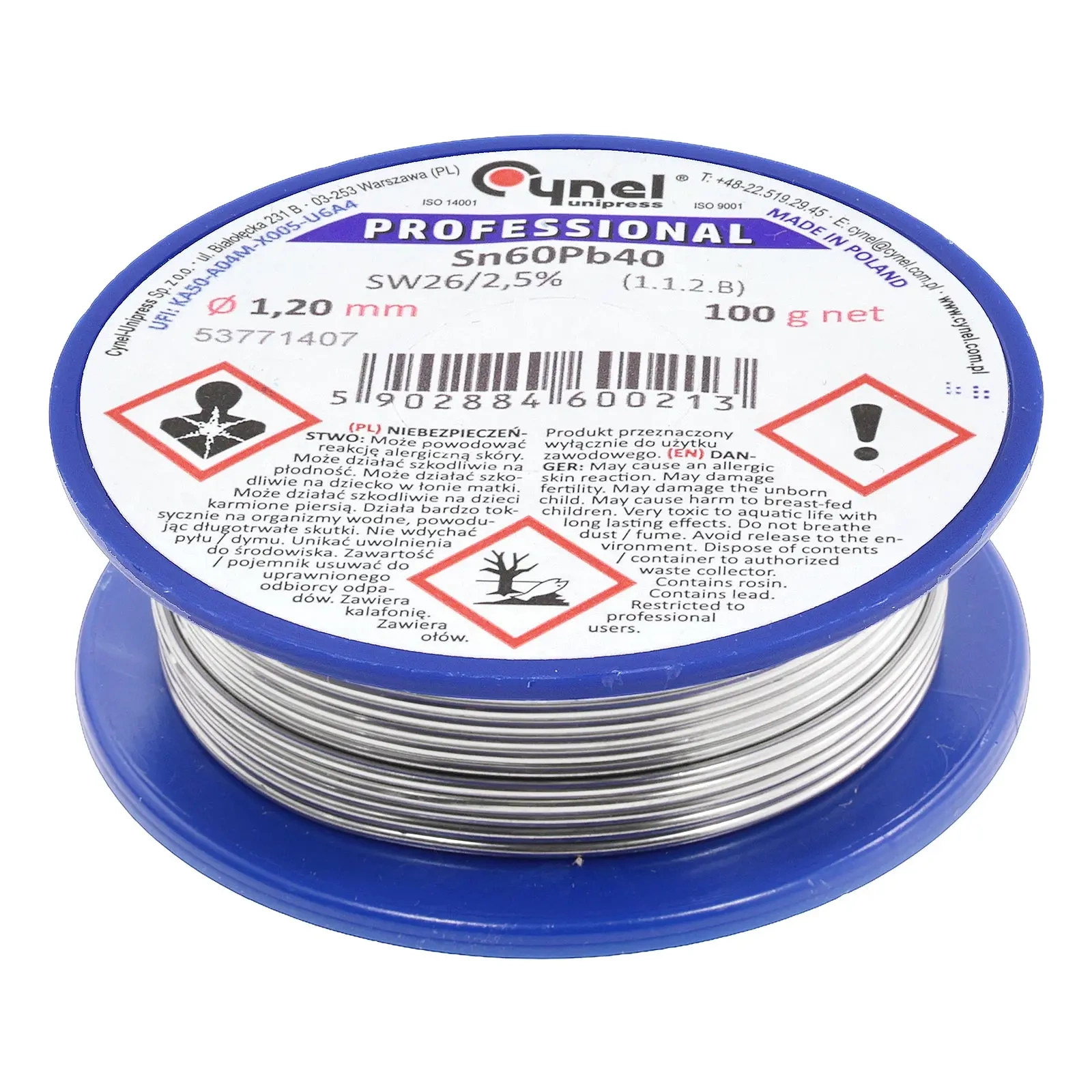 Cyna lutownicza z topnikiem SW26 - 1.2mm - spoiwo Sn60Pb40 Cynel 100g