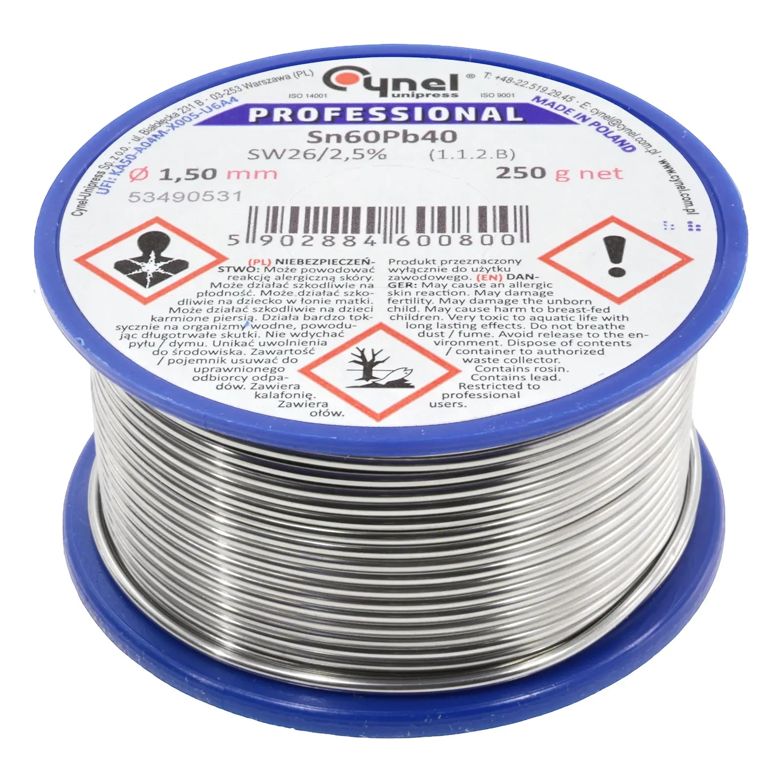 Spoiwo Sn60Pb40 z topnikiem SW26 zostało wyprodukowane w pierwszym wytopie cyny i ołowiu zgodnie z EN ISO 9453:2014. Zawiera kalafoniowy, halogenkowy topnik SW26. Produkt przeznaczony do profesjonalnego lutowania automatycznego i ręcznego w elektronice i elektrotechnice, gdzie nie jest wymagane spełnienie warunków dyrektywy RoHS2.