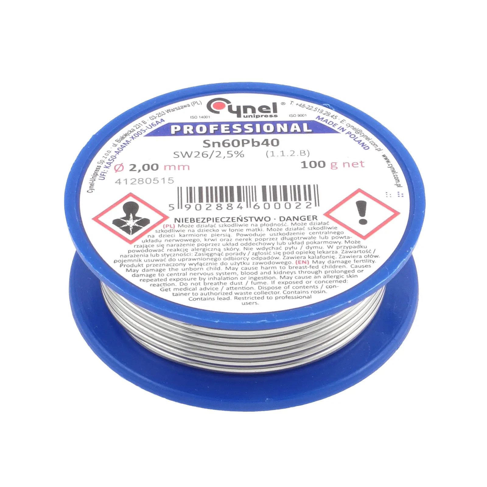 Opinie o Cyna lutownicza z topnikiem SW26 - 2mm - spoiwo Sn60Pb40 Cynel 100g