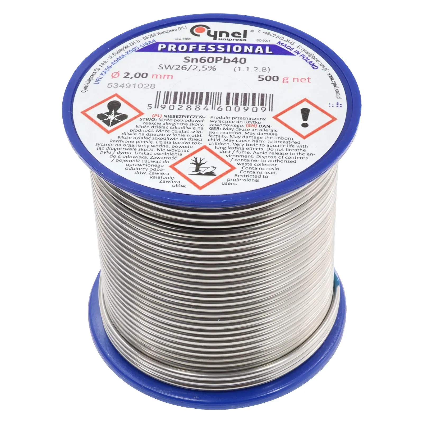 Spoiwo Sn60Pb40 z topnikiem SW26 zostało wyprodukowane w pierwszym wytopie cyny i ołowiu zgodnie z EN ISO 9453:2014. Zawiera kalafoniowy, halogenkowy topnik SW26. Produkt przeznaczony do profesjonalnego lutowania automatycznego i ręcznego w elektronice i elektrotechnice, gdzie nie jest wymagane spełnienie warunków dyrektywy RoHS2.