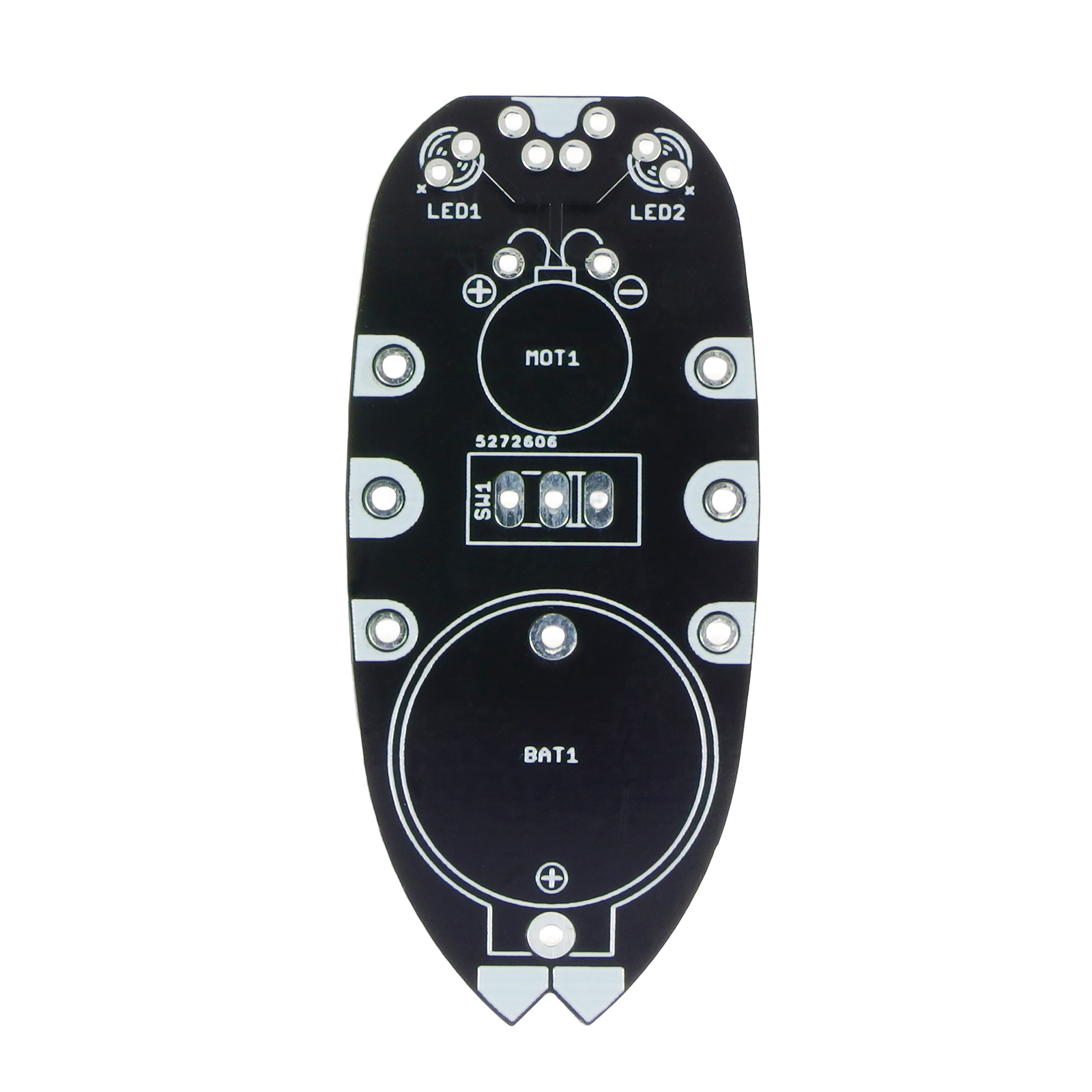 - Czarną płytkę PCB w kształcie sympatycznego robaczka
