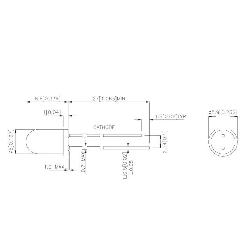 Dioda LED f5 czerwona 5mcd, Kingbright L-53HD