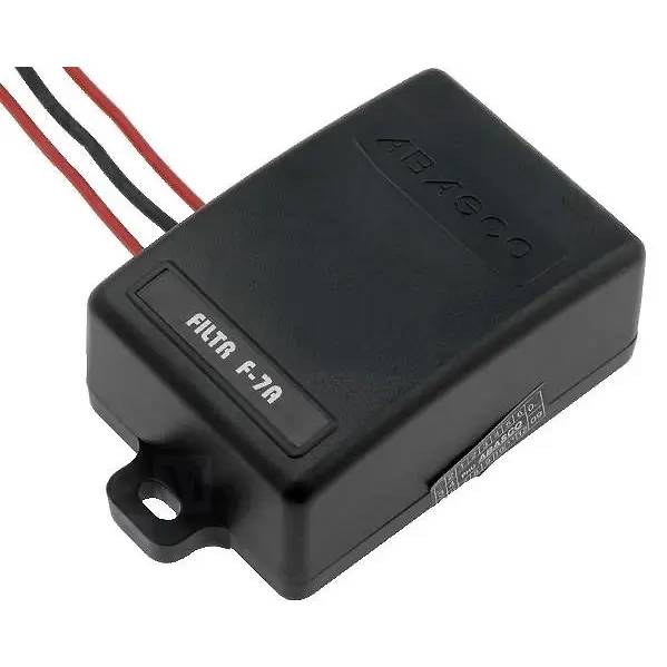 Filtr przeciwzakłóceniowy ABASCO F-7A służy do eliminacji zakłóceń pochodzących z układu zapłonowego, alternatora, silnika wycieraczek, dmuchawy, pompy paliwa i innych źródeł, które przedostają się do radioodbiornika lub radia CB poprzez przewody zasilające.