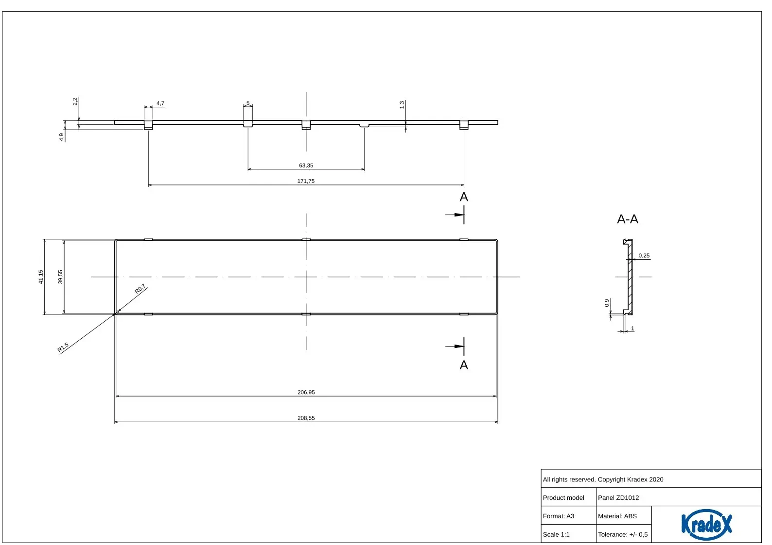 - Wymiary filtra ZDF1012: 208,55 x 41,15 mm