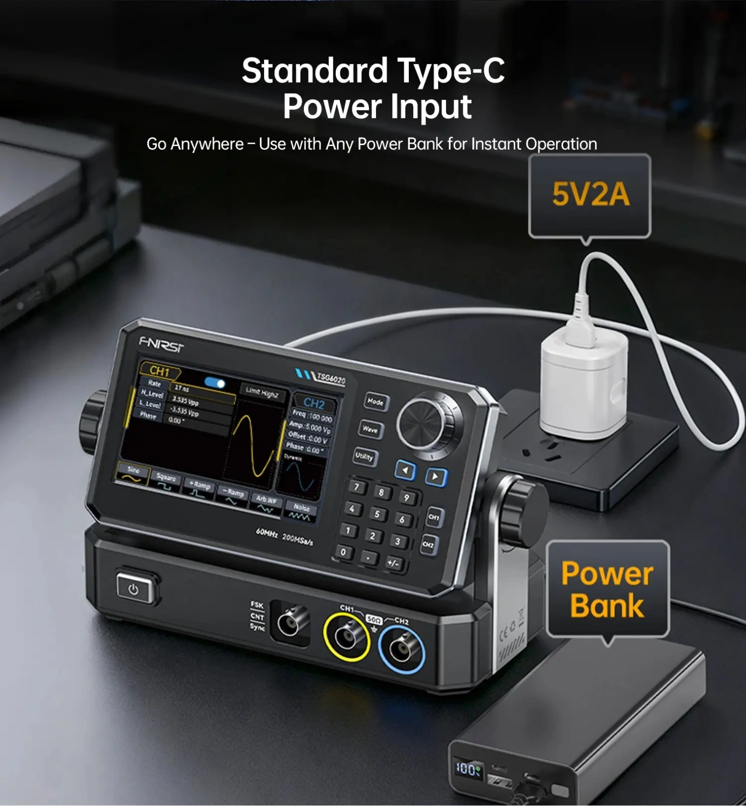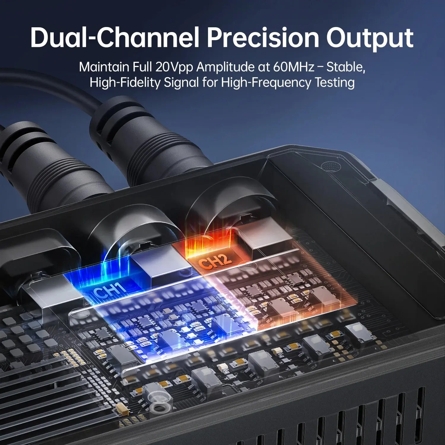 FNIRSI® TSG6020 - generator funkcyjny / arbitralny DDS 60 MHz, 2 kanały, 200 MSa/s