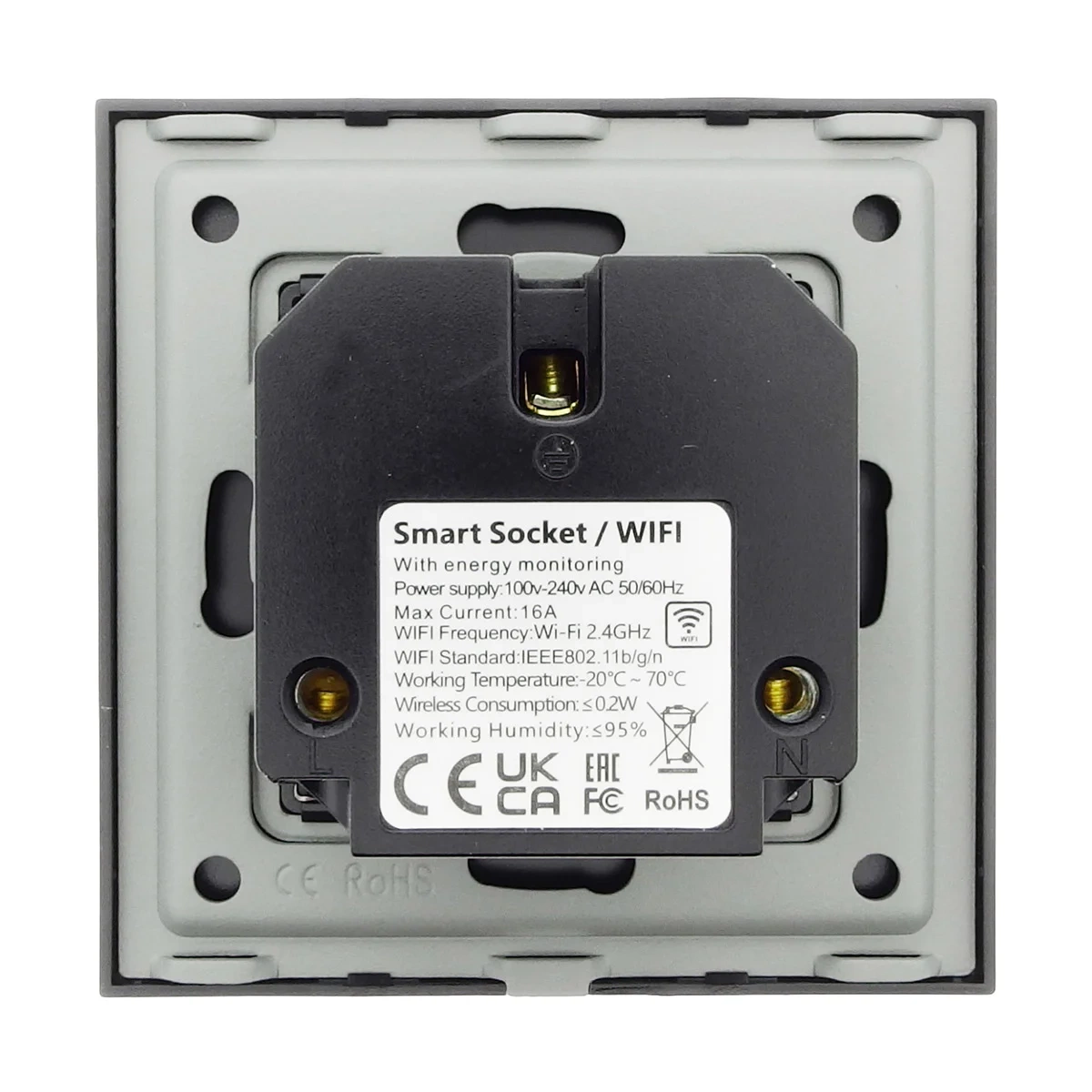 Gniazdko elektryczne z watomierzem - sterowanie WiFi + Bluetooth - szklana ramka - czarne - Tawoia Smart Home