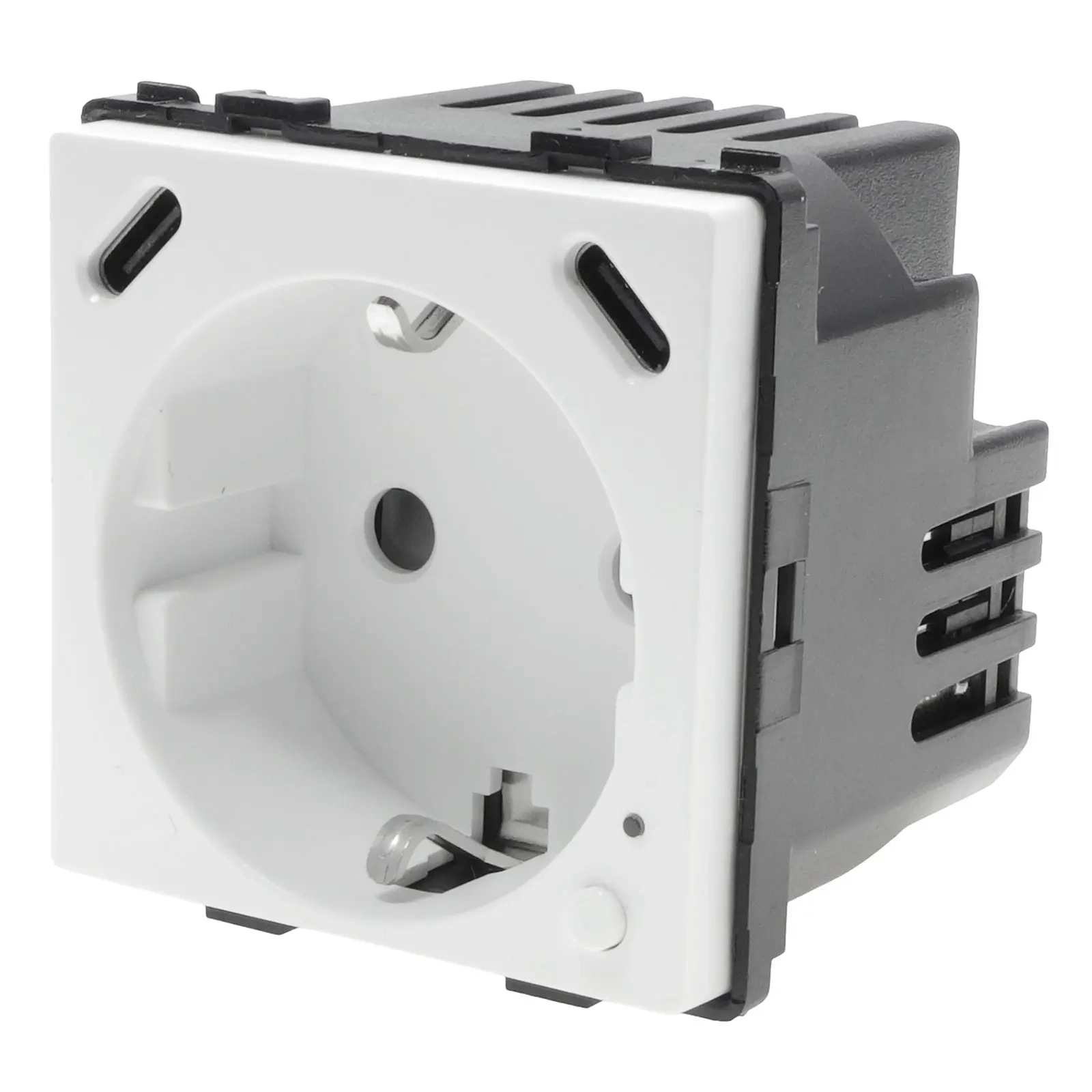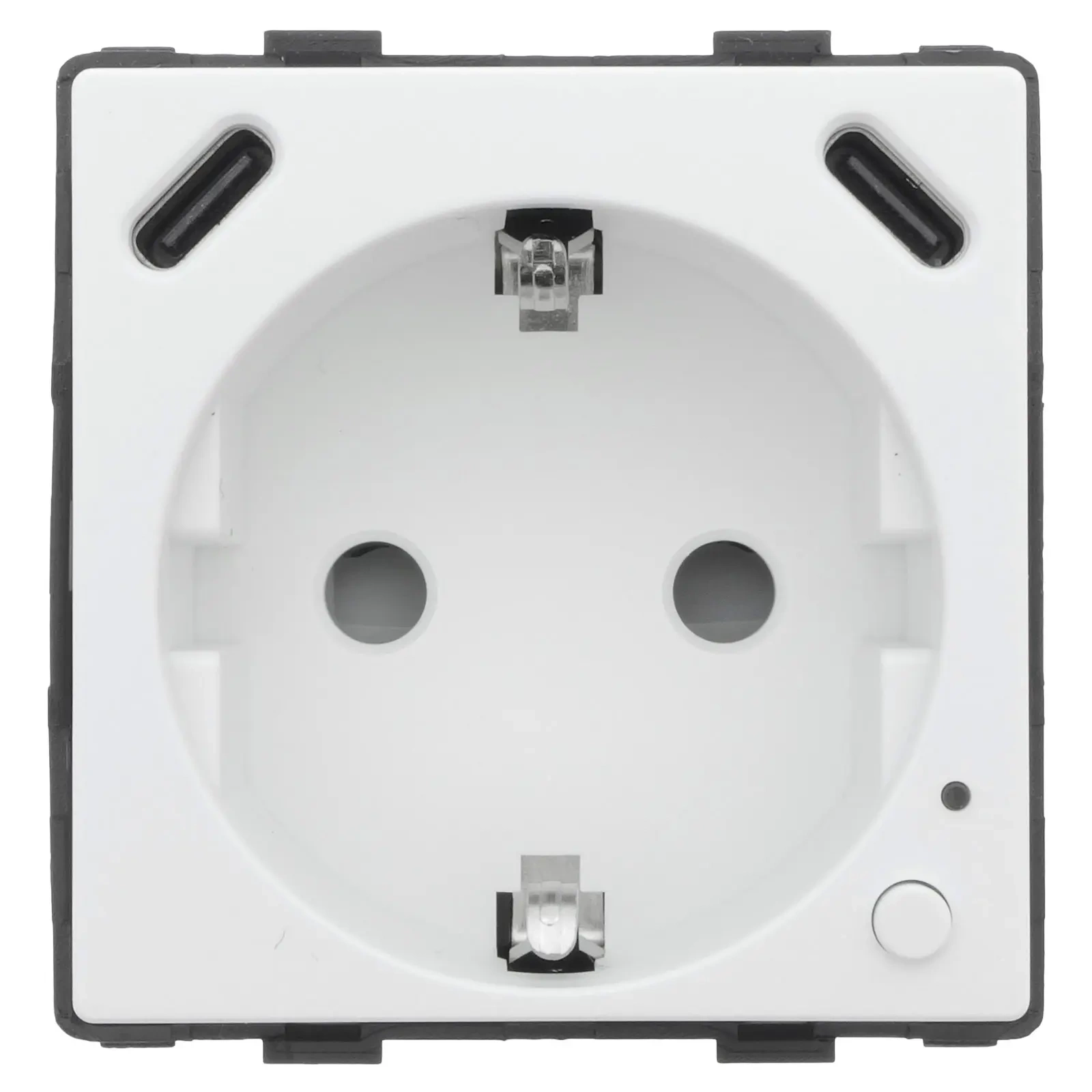 Moduł gniazda SCHUKO z funkcją watomierza to nowoczesne rozwiązanie do inteligentnego domu. Umożliwia zdalne sterowanie i monitorowanie zużycia energii elektrycznej, a dodatkowo wyposażony jest w dwa porty USB-C (20W) do szybkiego ładowania urządzeń mobilnych.