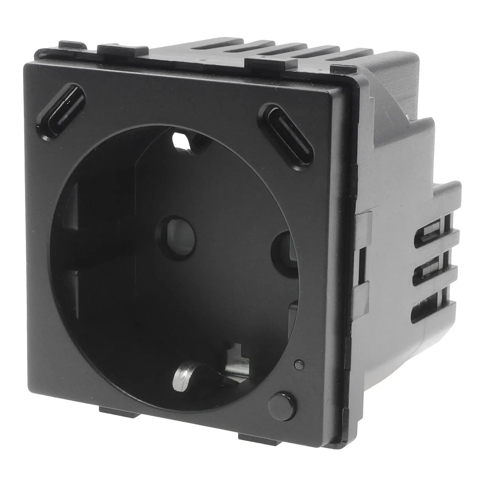Moduł gniazda SCHUKO z funkcją watomierza to nowoczesne rozwiązanie do inteligentnego domu. Umożliwia zdalne sterowanie i monitorowanie zużycia energii elektrycznej, a dodatkowo wyposażony jest w dwa porty USB-C (20W) do szybkiego ładowania urządzeń mobilnych.