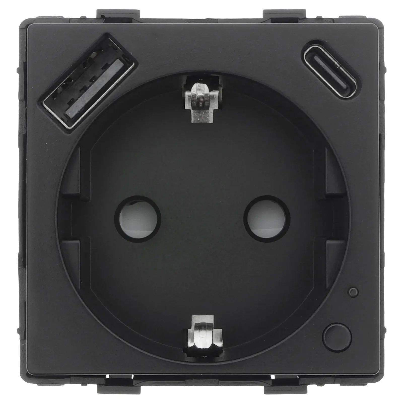 Gniazdko pojedyncze Schuko z USB A+C 20W - watomierz - WiFi / BT - szklana ramka - czarny - Tawoia Glass