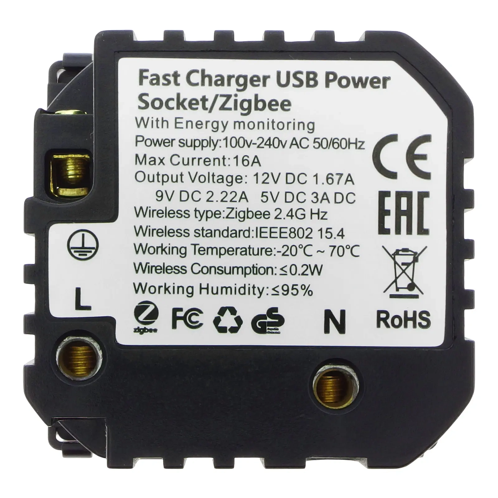 Inteligentne gniazdko ścienne 230V ze złączami USB oraz wbudowanym watomierzem. Za pomocą aplikacji mobilnej umożliwia sterowanie za pomocą protokołu ZigBee. Kompatybilność z Tuya Smart / Smart Life oraz obsługa głosowa przez Amazon Alexa i Google Assistant zapewnia wygodę w codziennym użytkowaniu.