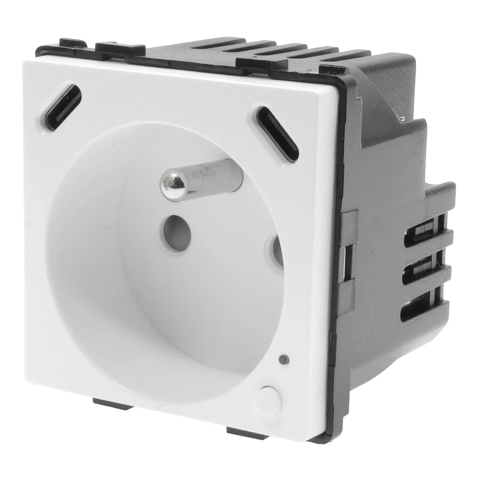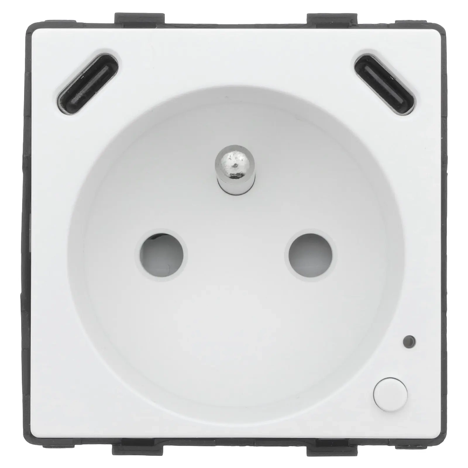 Moduł gniazda z bolcem uziemiającym (typu French) z WiFi i funkcją watomierza to nowoczesne rozwiązanie do inteligentnego domu. Umożliwia zdalne sterowanie i monitorowanie zużycia energii elektrycznej, a dodatkowo wyposażony jest w dwa porty USB-C (20W) do szybkiego ładowania urządzeń mobilnych.