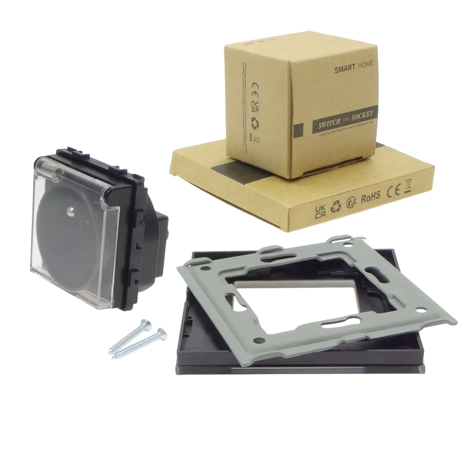 - Moduł gniazda elektrycznego bryzgoszczelnego IP44 z klapką