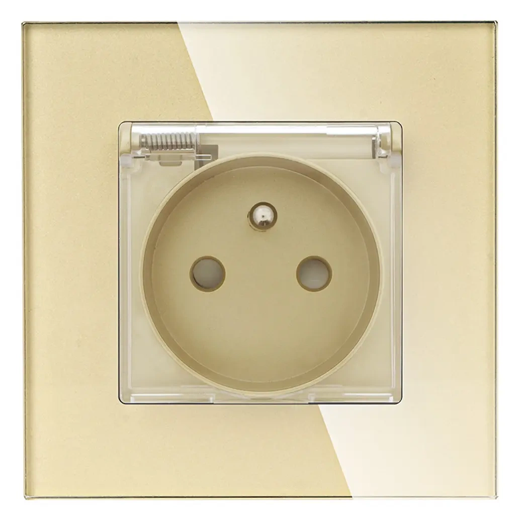 Gniazdo elektryczne IP44 z klapką z ramką szklaną - kolor złoty - Tawoia Glass