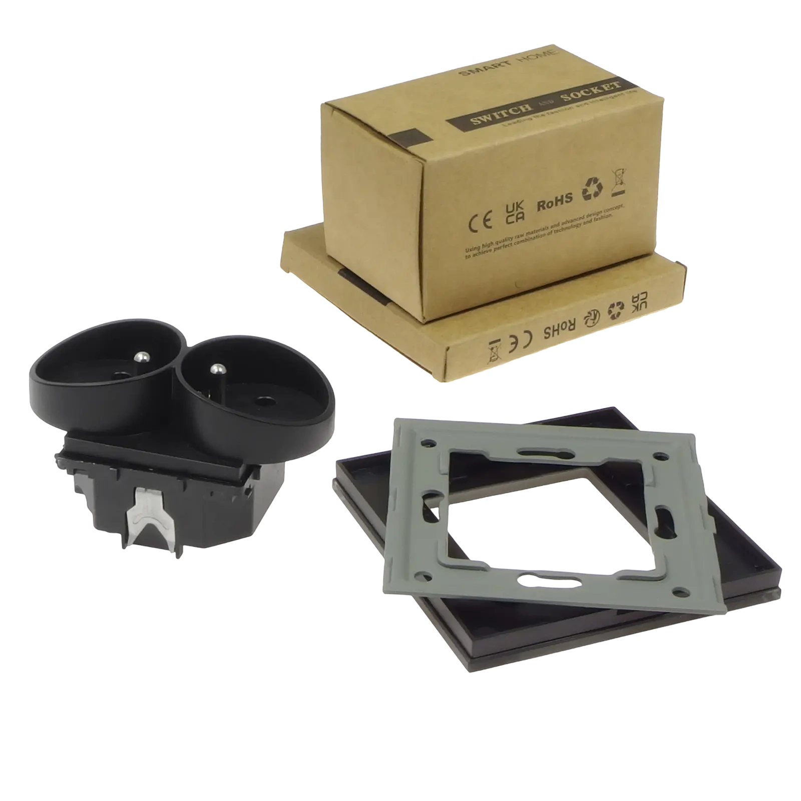 Gniazdko elektryczne ścienne podwójne z ramką szklaną TAWOIA Glass.