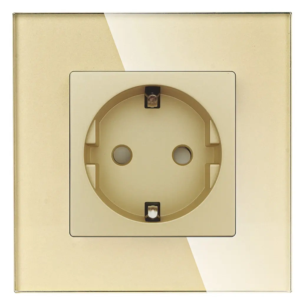 Gniazdo elektryczne Schuko z ramką szklaną - kolor złoty - Tawoia Glass