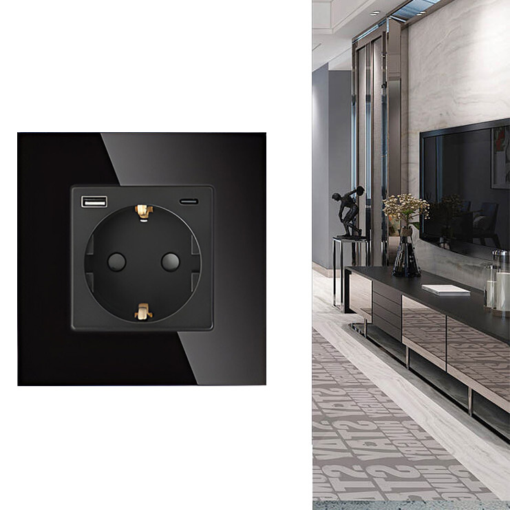 Szklane gniazdo elektryczne Tawoia Smart Glass Schuko z portami USB A i USB C to nowoczesny i funkcjonalny element wyposażenia wnętrz, który łączy klasyczne gniazdo sieciowe z możliwością bezpośredniego ładowania urządzeń mobilnych. To idealny wybór do domów, biur, hoteli i przestrzeni komercyjnych, gdzie liczy się zarówno wygoda, jak i estetyka.
