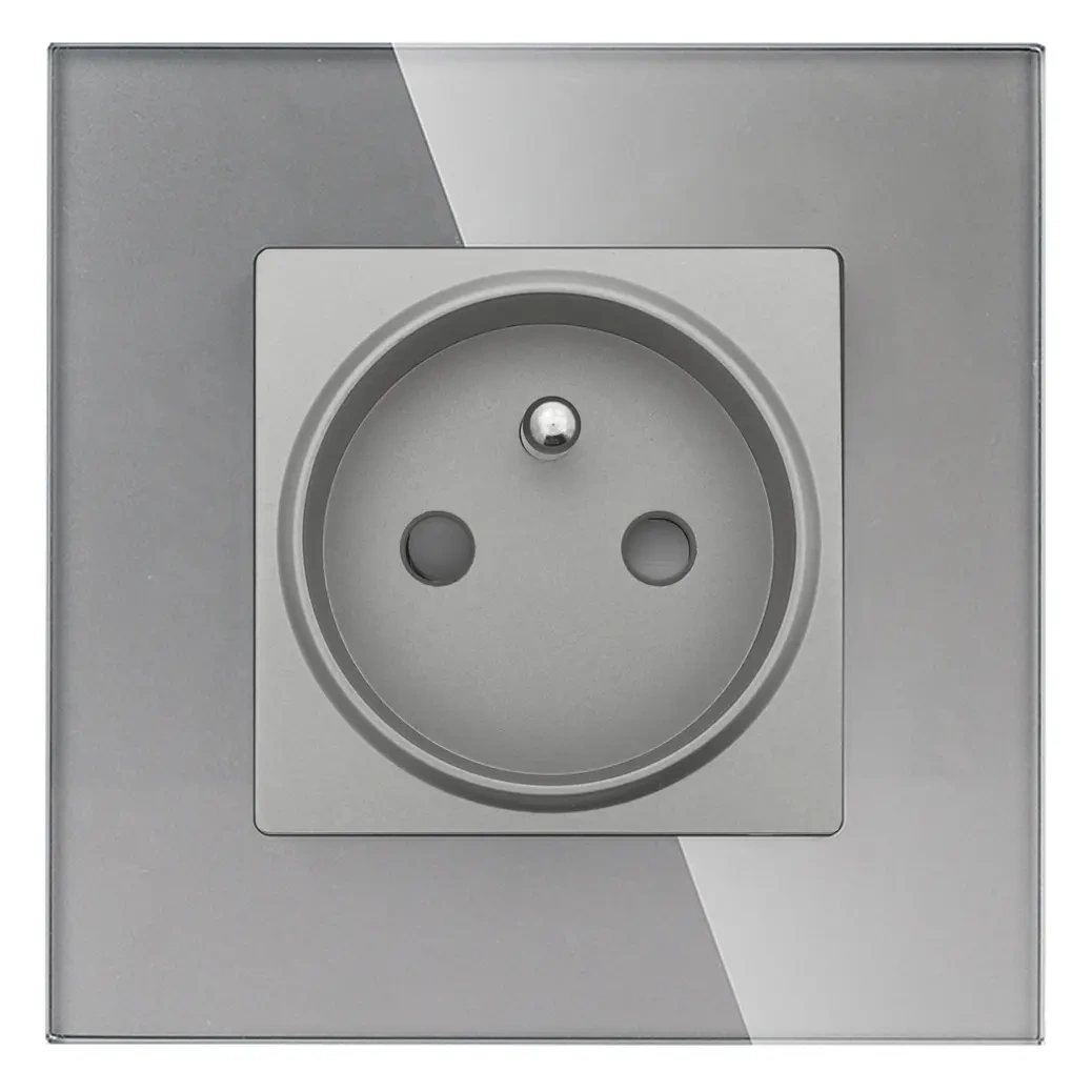 Gniazdo elektryczne pojedyncze z bolcem z ramką szklaną - kolor szary - Tawoia Glass