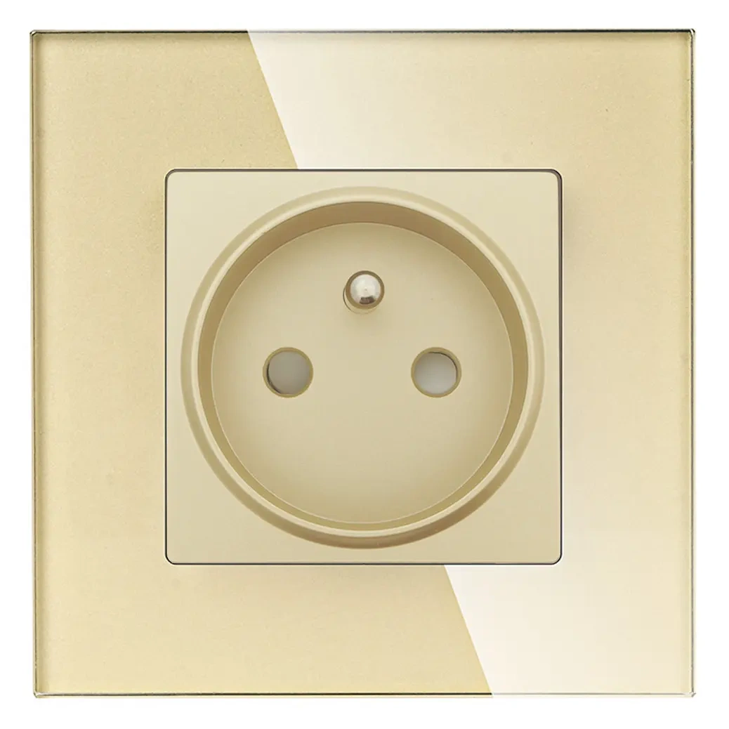 Gniazdo elektryczne pojedyncze z bolcem z ramką szklaną - kolor złoty - Tawoia Glass