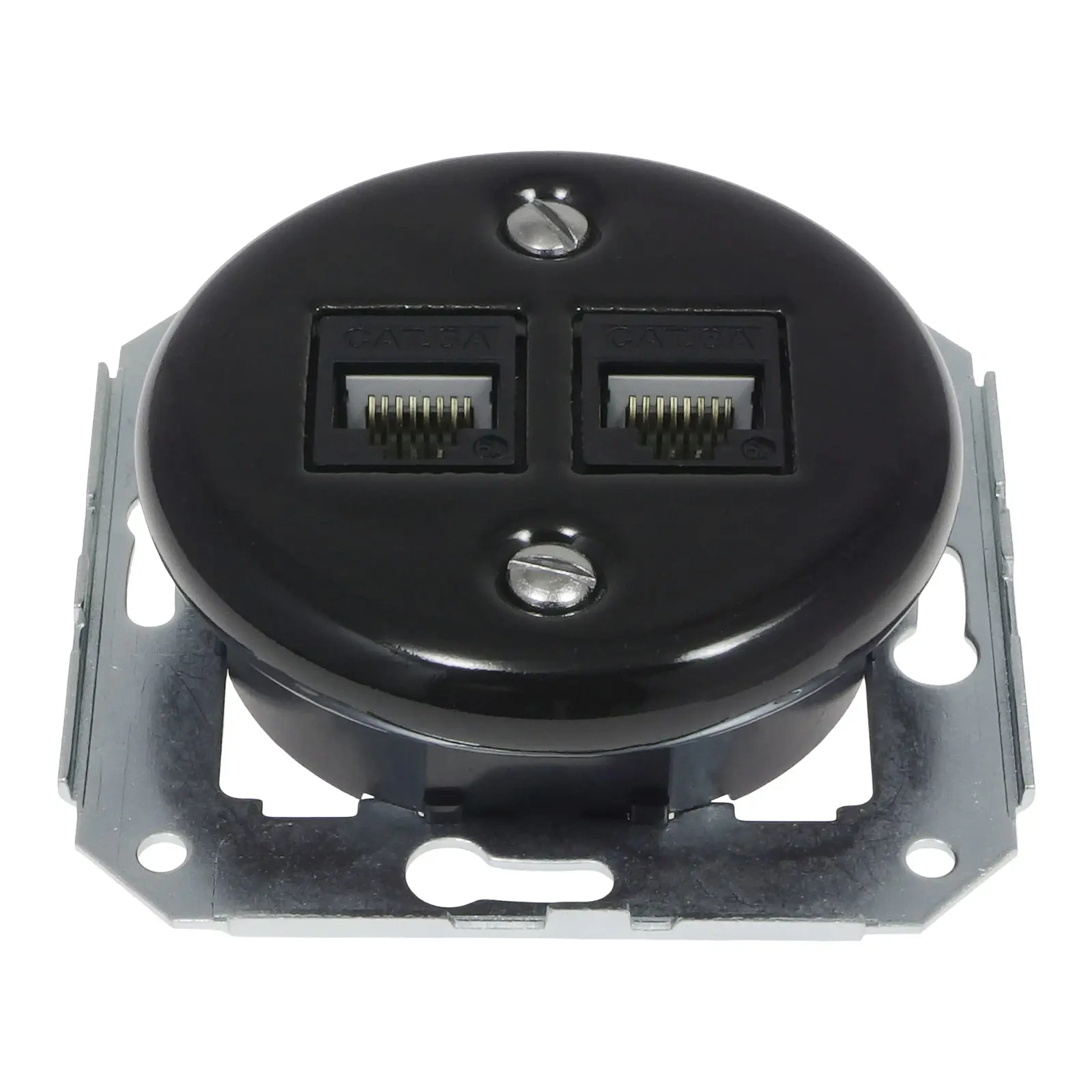 Seria Ceramic Loft: Gniazdo elektryczne ceramiczne + gniazdo Ethernet LAN CAT 6A ceramiczne gniazdo TV/SAT ceramiczne + ramka drewniana.