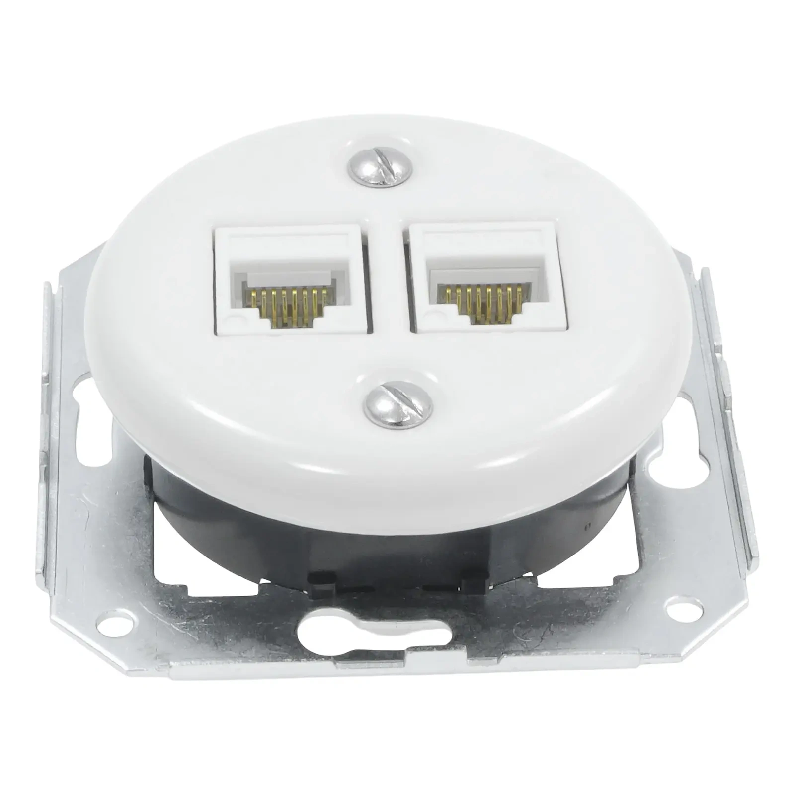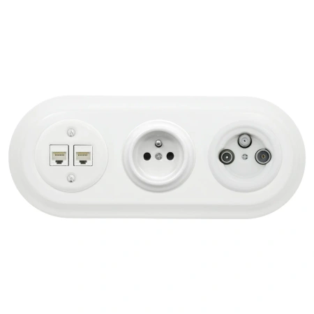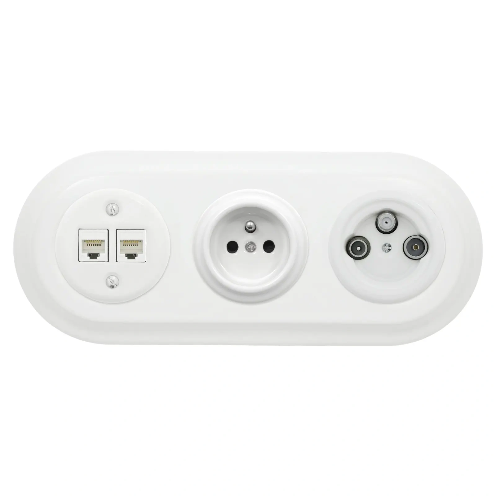 Gniazdo Ethernet Cat6 x2 + Gniazdo elektryczne + Gniazdo TV/SAT z ramką potrójną, białe, montaż podtynkowy, Ceramic Loft