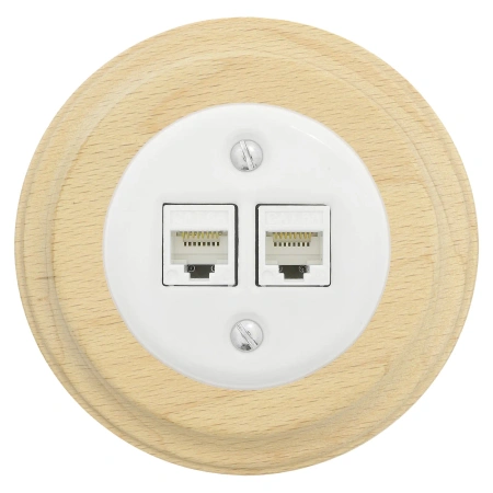 Seria Ceramic Loft: Gniazdo Ethernet LAN CAT 6A ceramiczne + ramka drewniana.