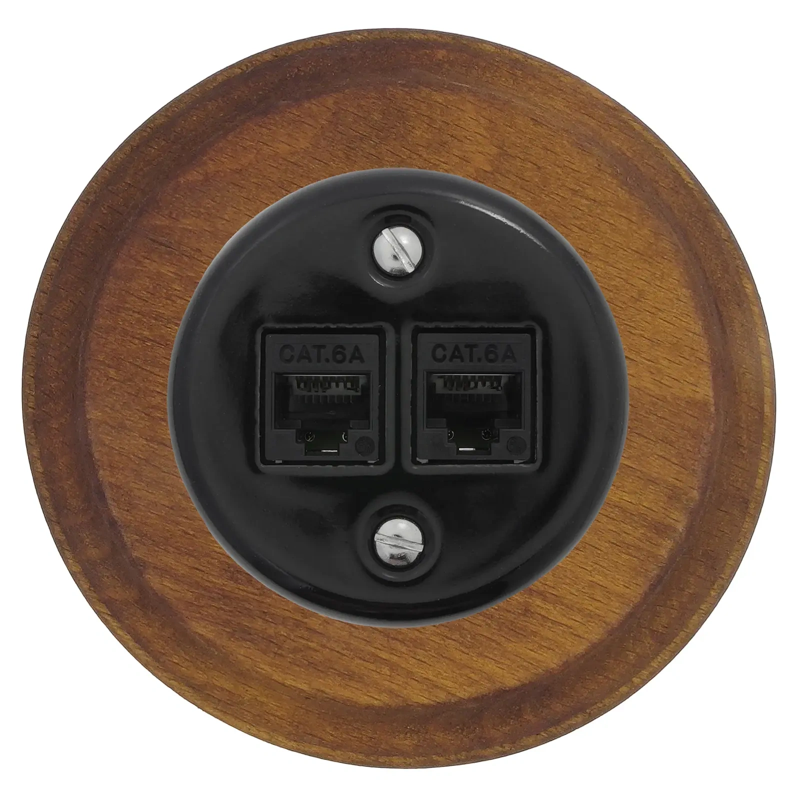 Seria Ceramic Loft: Gniazdo Ethernet LAN CAT 6A ceramiczne + ramka drewniana.