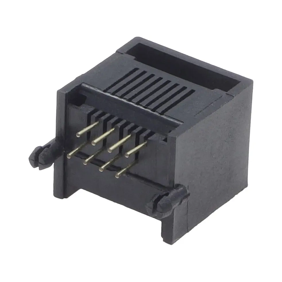 Gniazdo telefoniczne modułowe miniaturowe 8P8C, 8 styków, kątowe do druku, styki pozłacane, kolor czarny