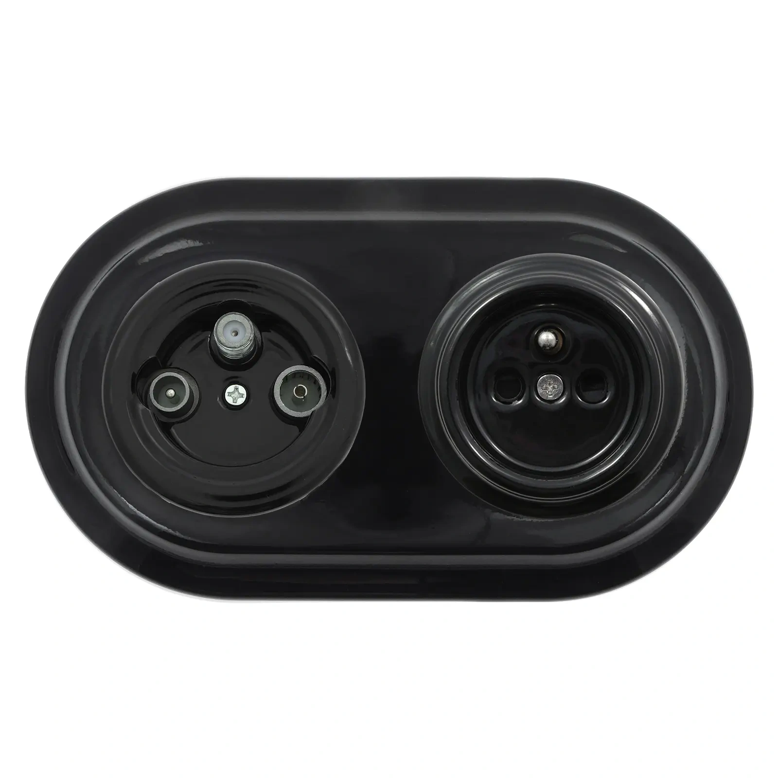 Gniazdo TV/SAT + Gniazdo elektryczne okrągłe z ramką podwójną, czarne, montaż podtynkowy, Ceramic Loft