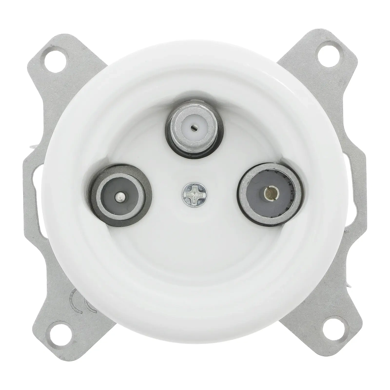 Gniazdo umożliwia jednoczesne podłączenie sygnału telewizji naziemnej (TV), telewizji satelitarnej (SAT) oraz radia, zapewniając stabilny przesył sygnału bez strat jakości. Zastosowanie wysokiej jakości złączy koncentrycznych gwarantuje niskie tłumienie sygnału oraz odporność na zakłócenia elektromagnetyczne.