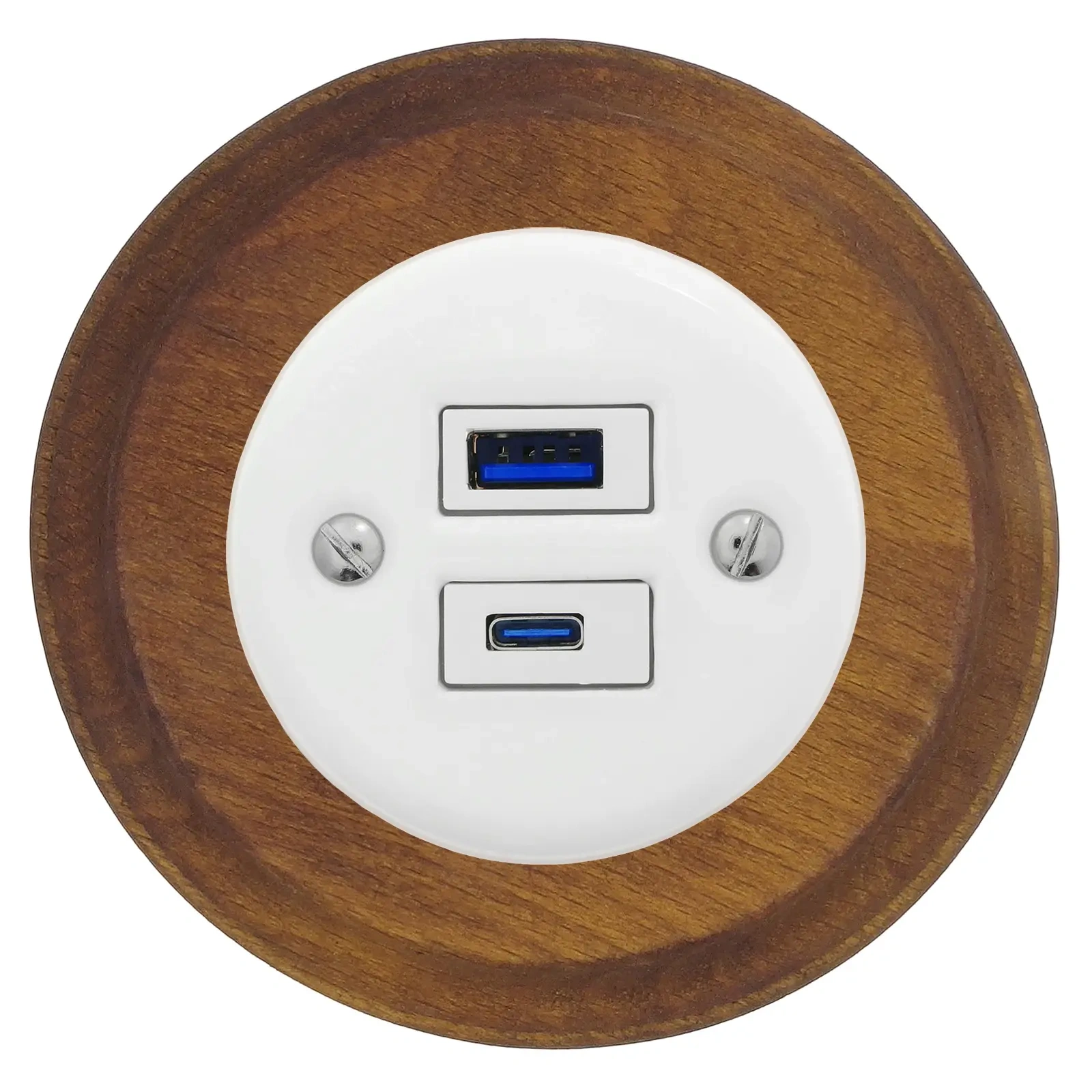 Seria Ceramic Loft: Gniazdo USB A+C ceramiczne + ramka drewniana.