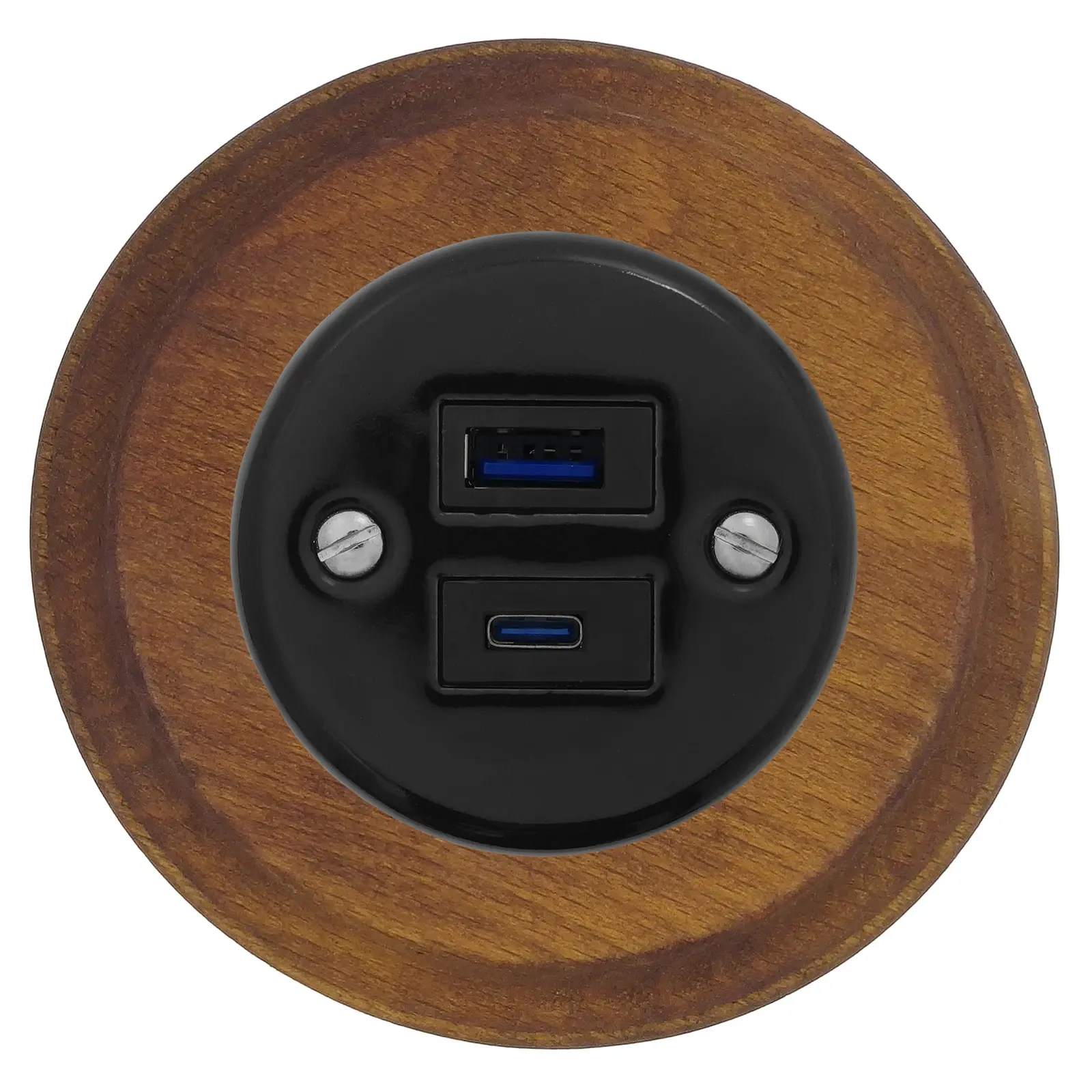 Seria Ceramic Loft: Gniazdo USB A+C ceramiczne + ramka drewniana.
